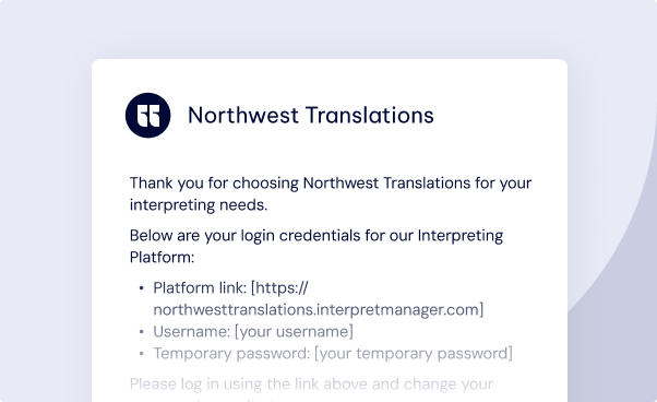 You will receive an email with your credentials and link to access to our lnterpreting Platform.